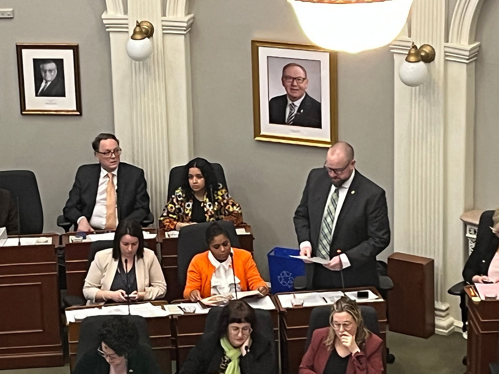 On March 24, 2026, MLA Paul Wozney (Sackville-Cobequid) at the NS Legislature recognized the SRA for our hard work saving the Sackville River and the environment and introduced two members in the gallery - Shauna MacKinnon and Walter N. Regan of the SRA.
